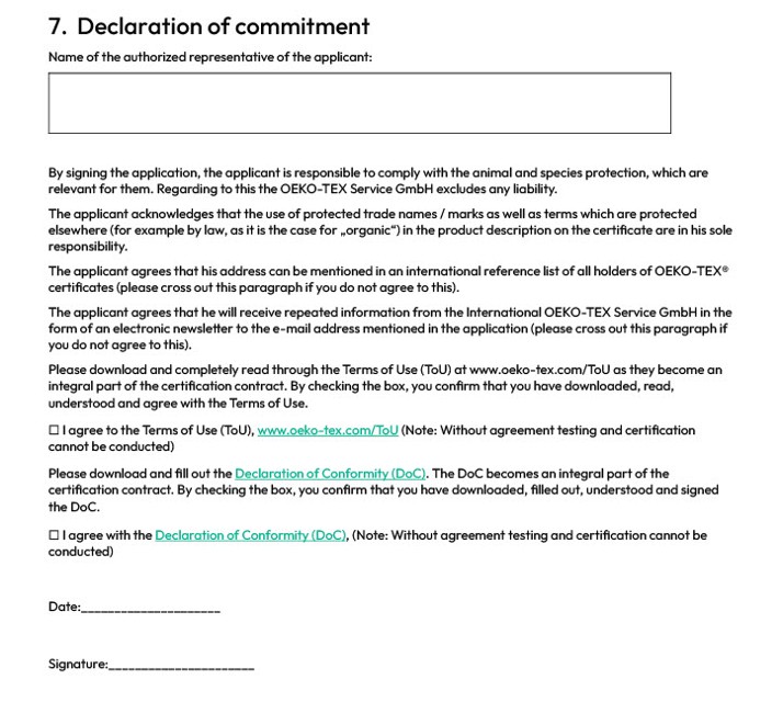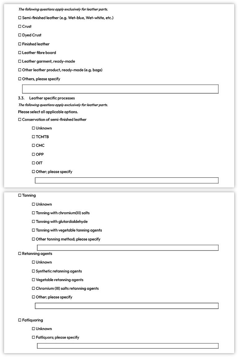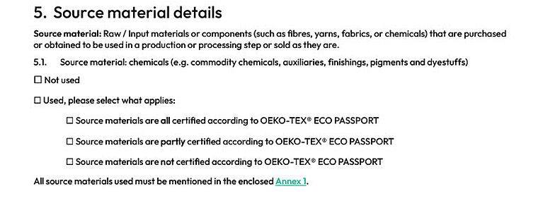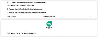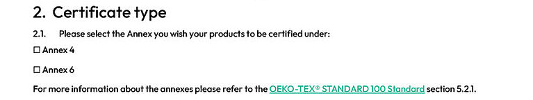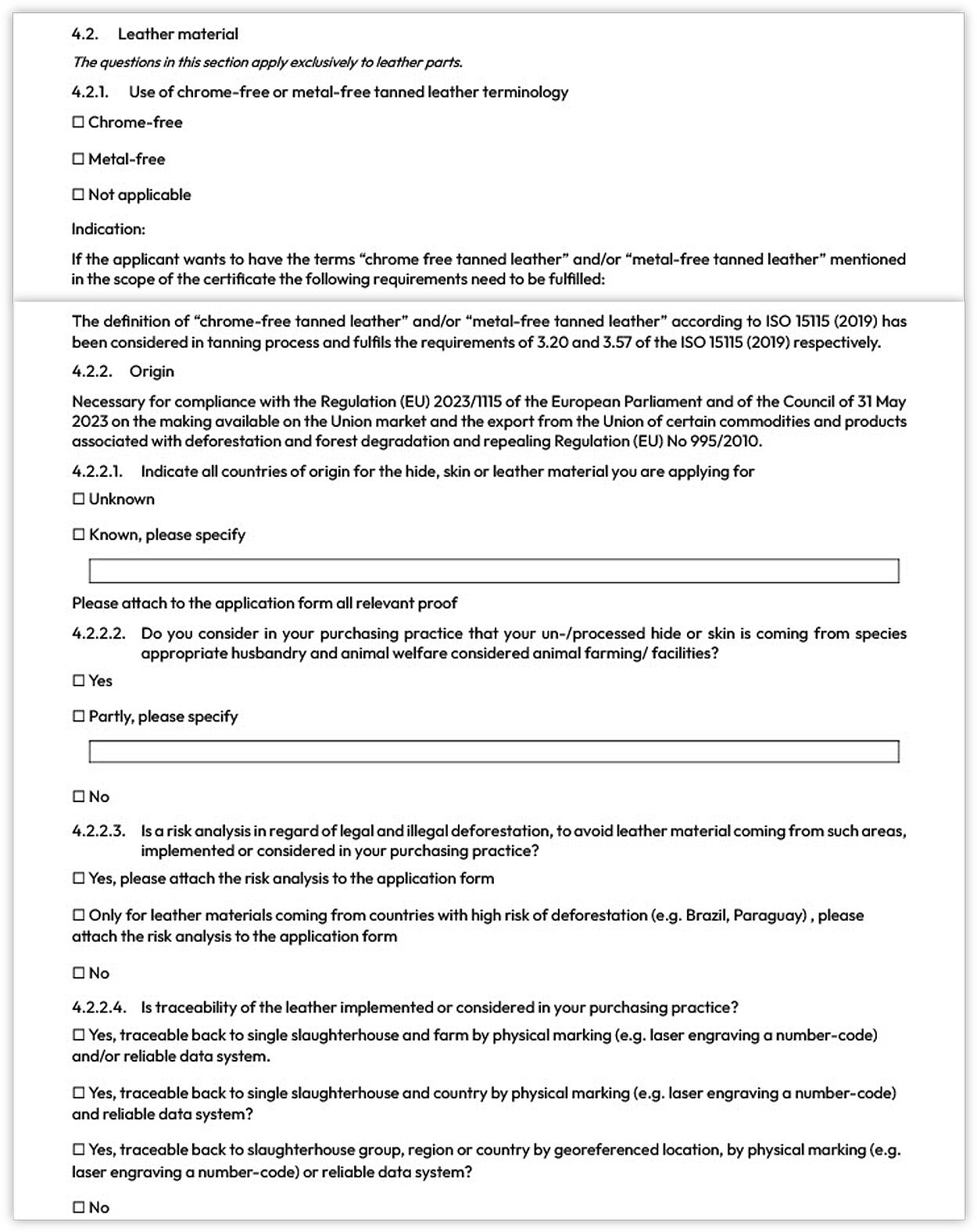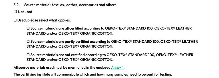 Include copies of supplier certificates (STANDARD 100, LEATHER STANDARD, ECO PASSPORT).