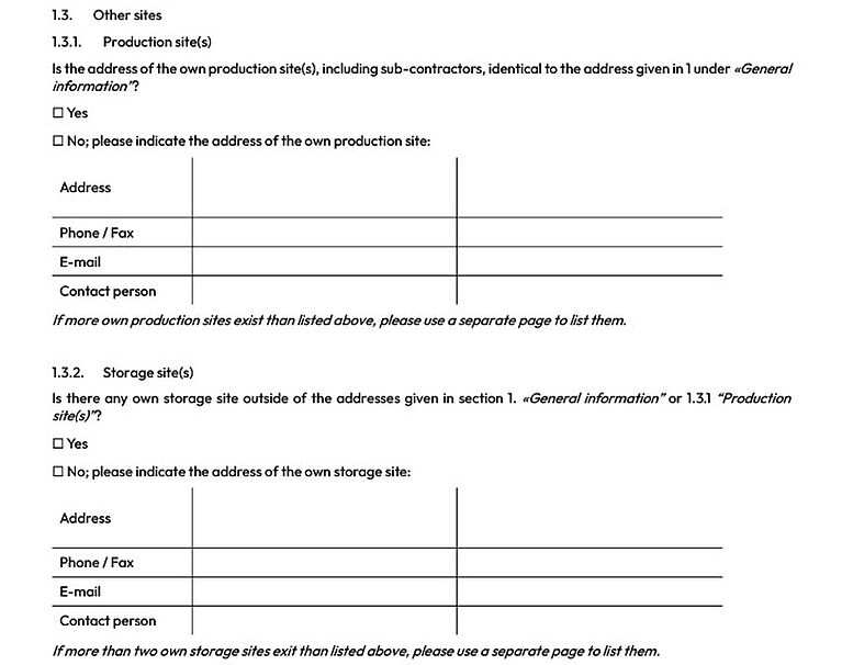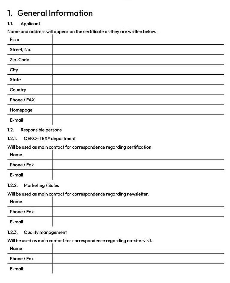 - Organizational chart/list with names and responsibilities (CEO, purchasing, QM etc.)