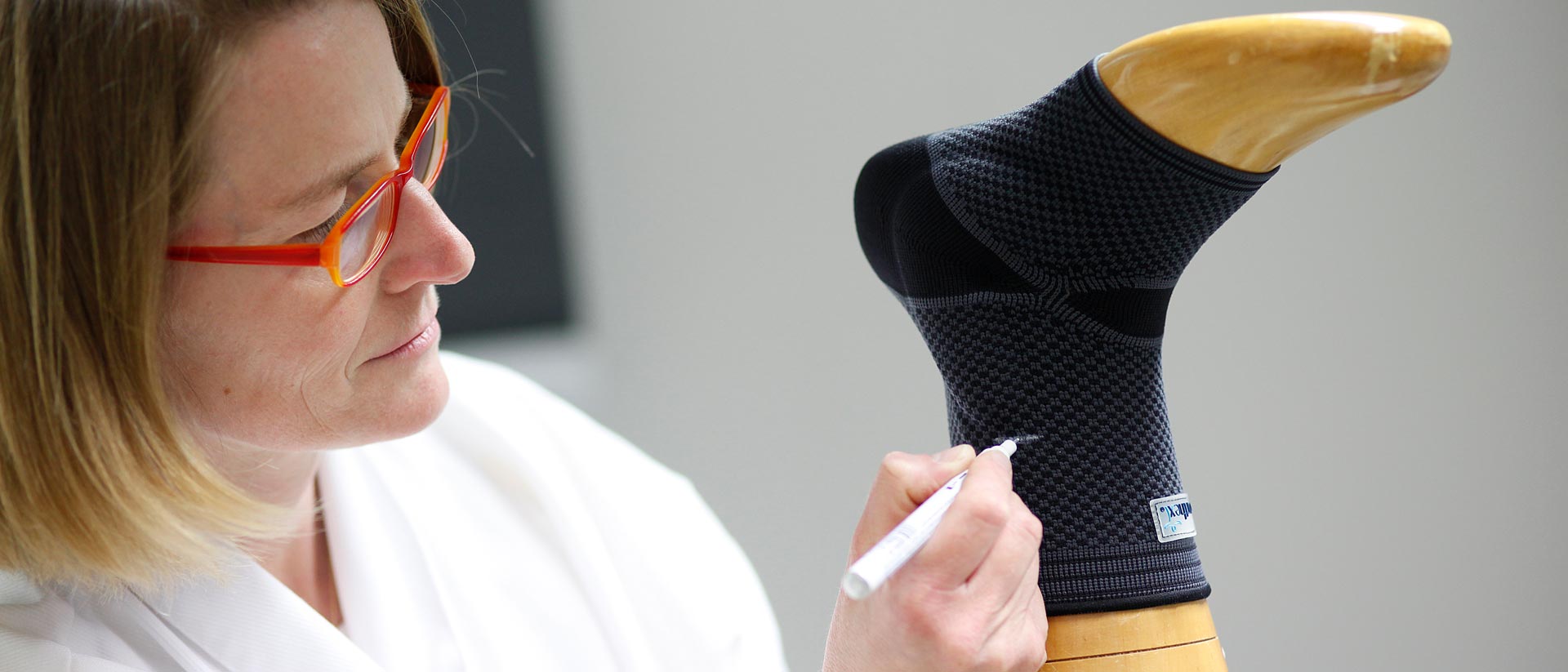 We check the pressure profile (gradually decreasing, increasing or constant) of a textile for specific body parts depending on the desired effect.