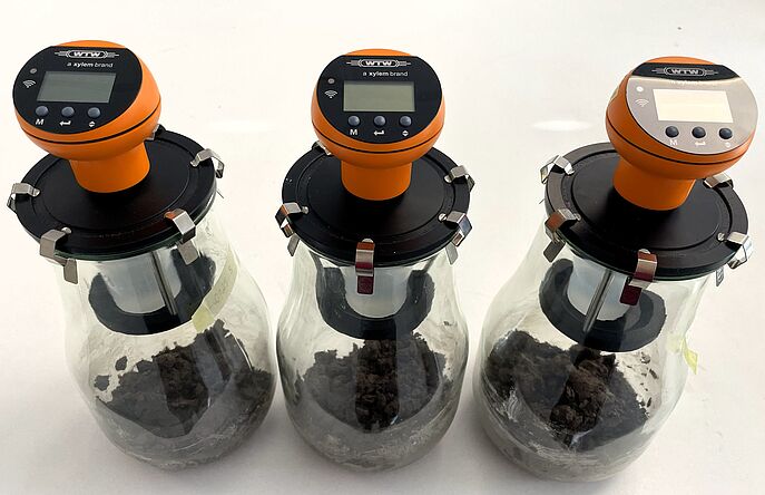 The respirometer system measures how much oxygen soil microorganisms consume during material degradation, determining the rate and extent of biological breakdown. Photo: Hohenstein